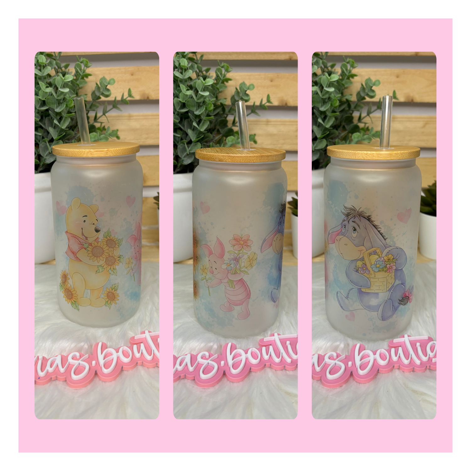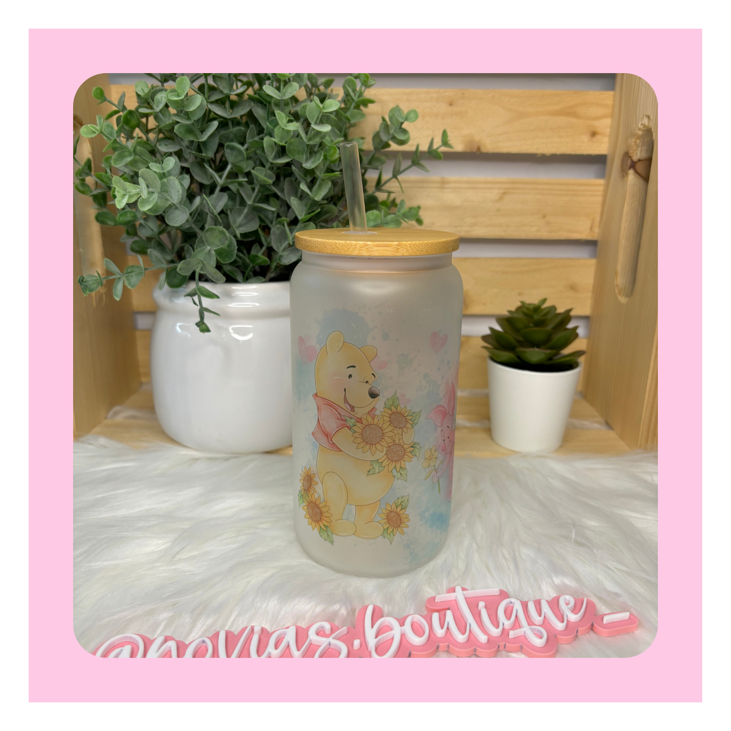 • Frosted Glass Tumbler with Bamboo lid and plastic clear straw