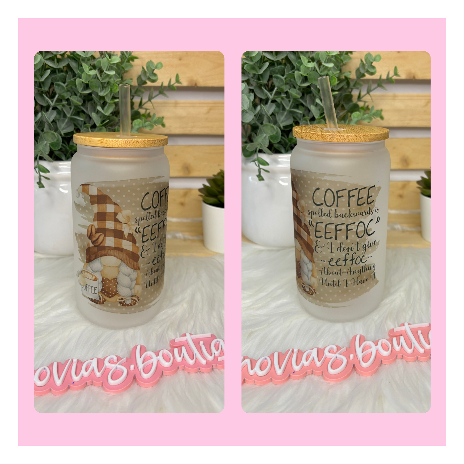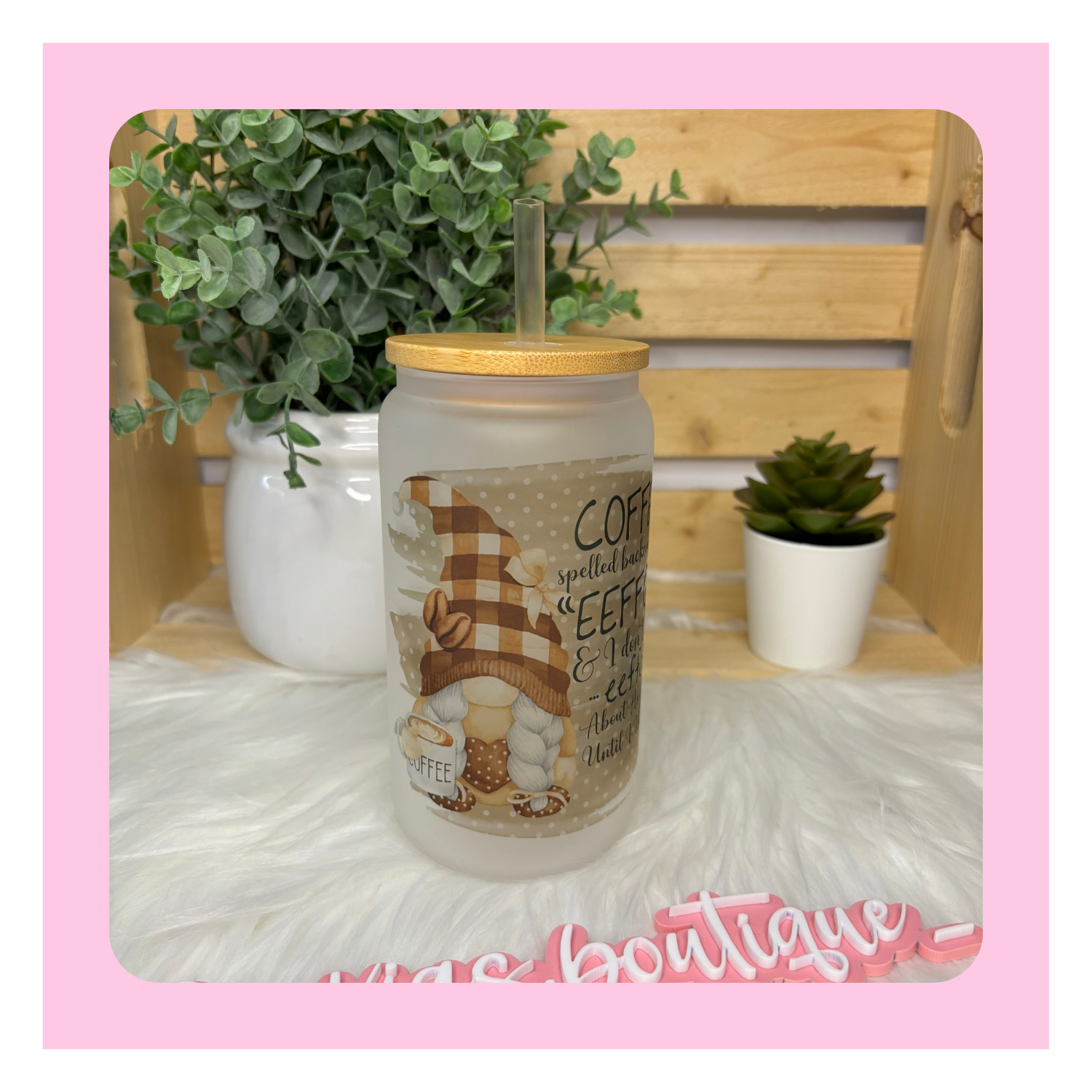 • Frosted Glass Tumbler with Bamboo lid and plastic clear straw.