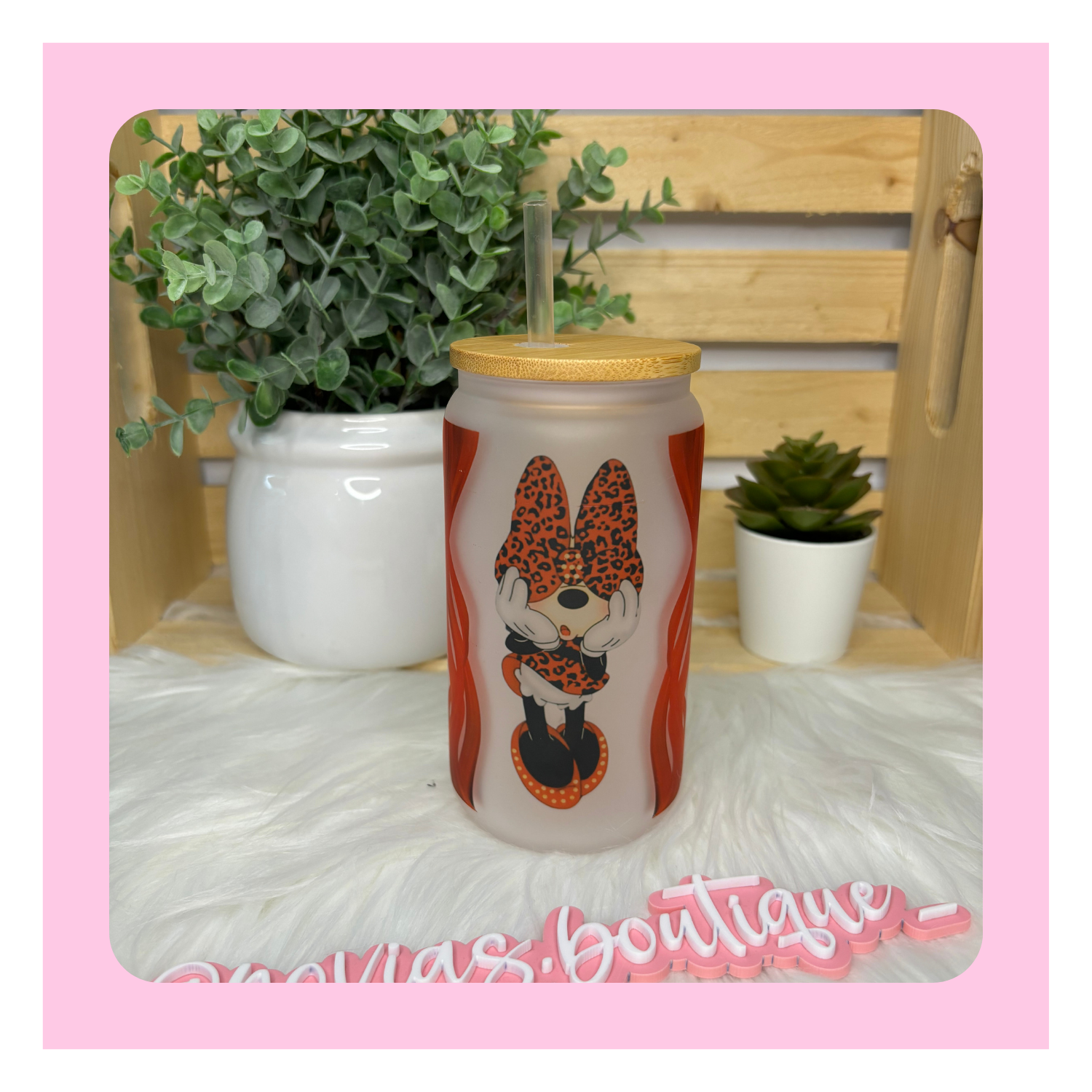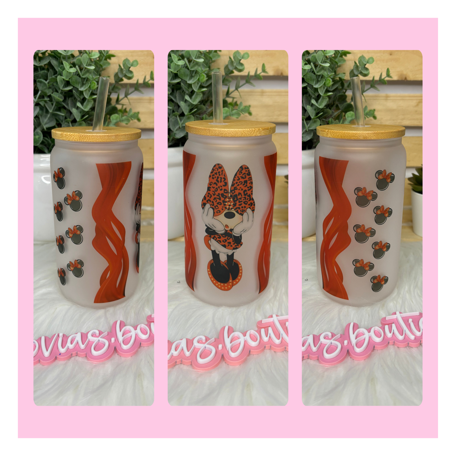• Frosted Glass Tumbler with Bamboo lid and plastic clear straw
